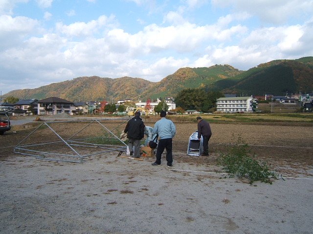 全国的に「木枯らし1号」が吹き荒れたこの日、前日から用意したテントが飛びそうなので、30分前に急きょ会場を変更。テントを撤去して、会場を変更し「仏式」の地鎮祭を室内で行いました。